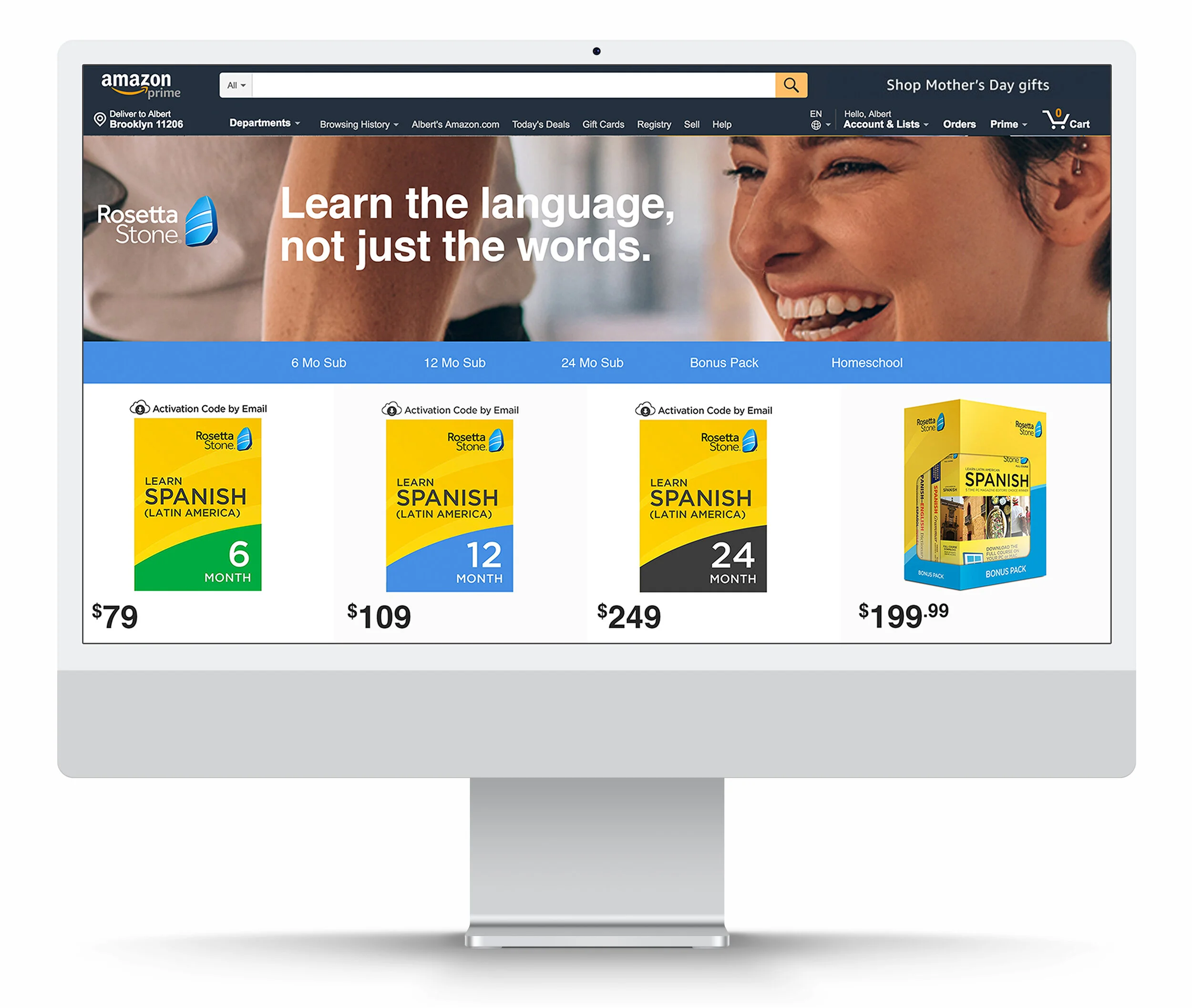 Design for the Rosetta Stone Brand store within the Amazon platform. A balance act of staying true to the brand within another platform.