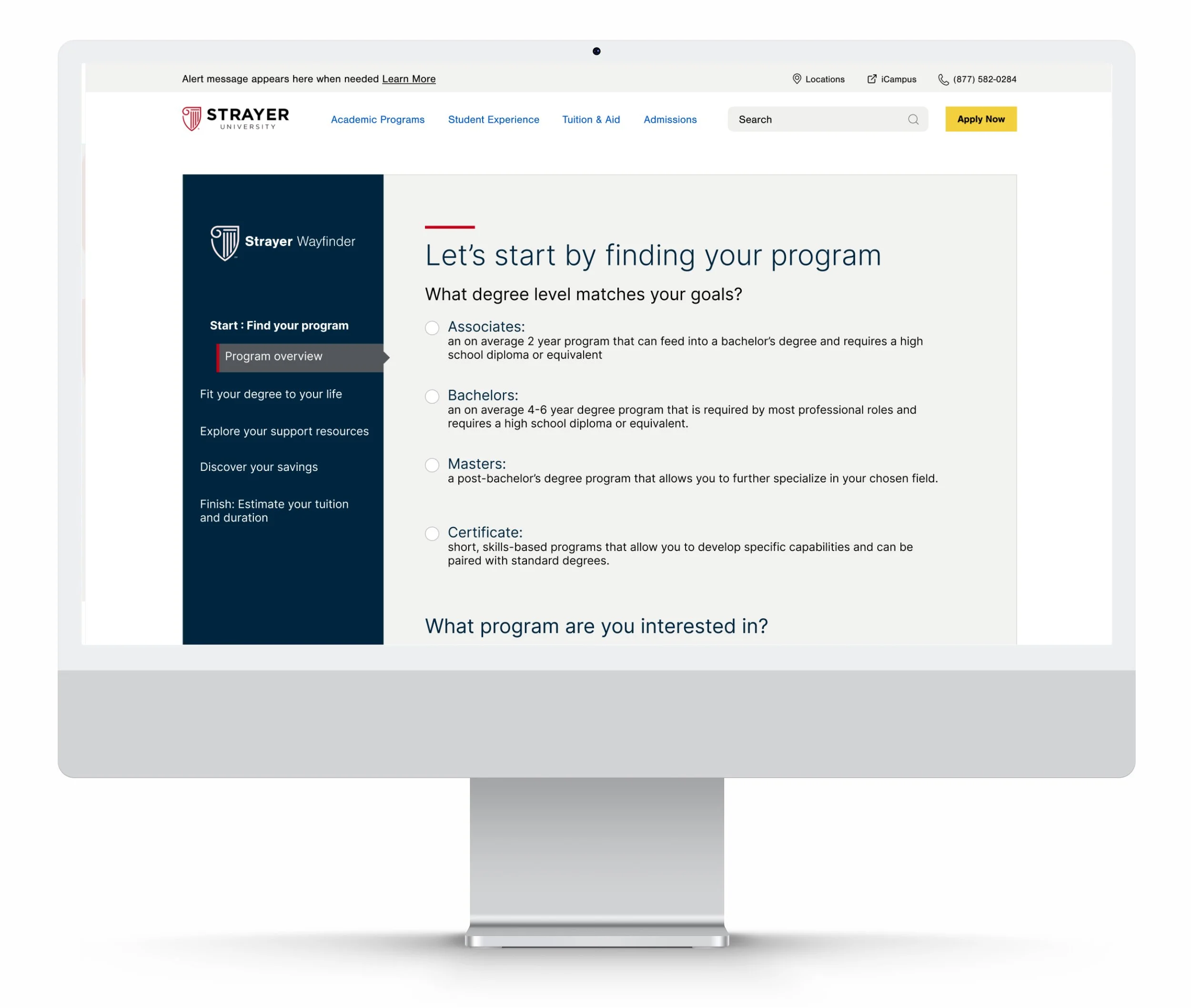 Codenamed "Voltron", the Wayfinder tool was meant to consolidate and package all the different web tools that is being used across Strayer.edu into one comprehensive experience for prospective students making their research into higher education.