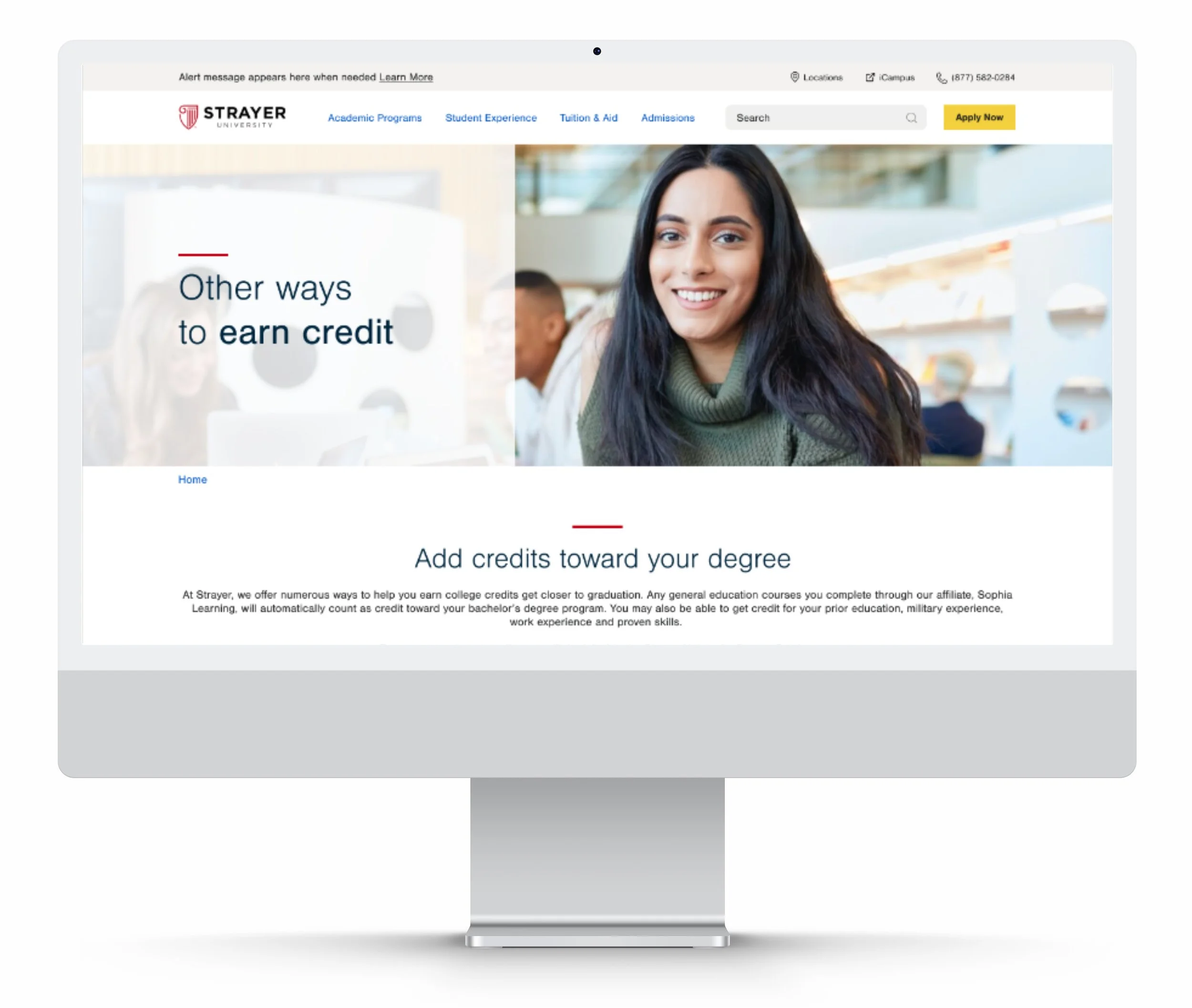 Strayer University needed a page to let prospective students know of the different ways that they could earn credits that would count towards their degrees and get closer to graduation. The design of the page didn't need to be too complicated in order to communicate such valuable information. This is a perfect case of simpler is better at the end of the day.